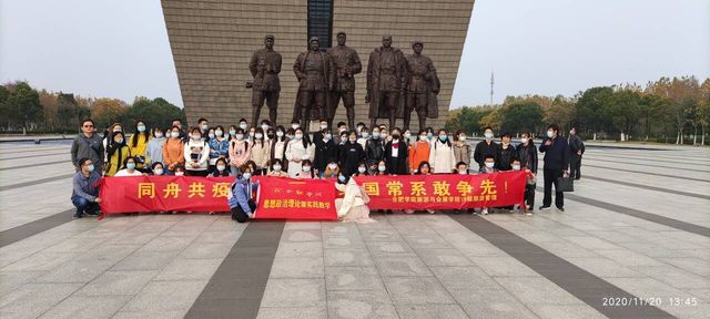| 2020年11月20日馬克思主義基本原理概論課教研室李繼友、朱鳳琴、魏亞、劉昆、周坤、謝敏芳、李建瑞七位老師組織19級旅游管理1、2兩個班同學到渡江戰役紀念館開展社會實踐教學活動。