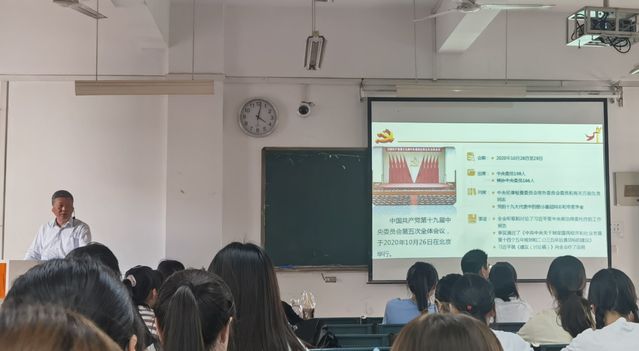 5月25日下午,校紀委書記查凱在6棟307教室,以“擘畫新藍圖,開啟新征程——十九屆五中全會精神解讀”為主題,為2020級財務管理(1)、(2)班學生上了一場別開生面的形勢與政策課,同學們表示熱烈歡迎。
