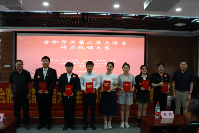 | 我校舉辦第二屆大學生講思政課大賽 為深入學習貫徹習近平總書記關于思政課建設的重要論述和黨的二十大精神,推動學習貫徹習近平新時代中國特色社會主義思想主題教育走深走實,積極推進我校思政課改革創新,6月16日上午,我校第二屆大學生講思政課大賽(決賽)在一期六棟教學樓學術報告廳舉行。合肥師范學院機關二黨委書記陶有浩教授、安慶師范大學馬克思主義學院副院長張俊生教授、安徽建筑大學馬克思主義學院副院長劉曉君教授、安徽中醫藥大學馬克思主義學院副院長郭躍教授和安徽藝術學院馬克思主義學院副院長陳昀嵐教授應邀擔任評委。馬克思主義學院院長陳志超、副院長蘇冰,馬克思主義學院全體教師、各參賽團隊指導老師及學生團隊代表現場觀摩。 本次大賽由校黨委宣傳部、教務處、學生處、創新創業教育處、團委和馬克思主義學院共同主辦,馬克思主義學院具體承辦。大賽分為初賽和決賽,初賽形式為視頻評選,決賽形式為現場授課展示。全校108組學生團隊報名參賽,經過初賽評審,共有23組團隊進入決賽。決賽現場,選手們圍繞黨的二十大報告中的關鍵詞,以“鄉村振興”“中國式現代化”“堅持全面法治國”“打贏網絡意識形態斗爭”“堅定文化自信”“綠水青山就是金山銀山”“構建人類命運共同體”等為主題,講述新時代的奮斗故事,展現新時代的偉大成就,盡顯“強國有我”的擔當,充分展示了新時代大學生昂揚的精神風貌和良好的理論素養。