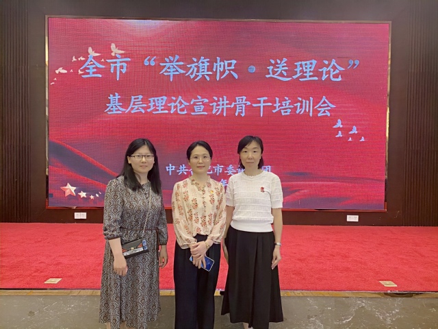 為深入學習貫徹習近平新時代中國特色社會主義思想和黨的二十大精神,提升基層理論宣講員宣講能力,2023年7月6日上午,合肥市委講師團組織召開全市“舉旗幟·送理論”基層理論宣講骨干培訓會。馬克思主義學院副院長蘇冰、黃瑩瑩和宣傳部萬昭瑩老師參加。