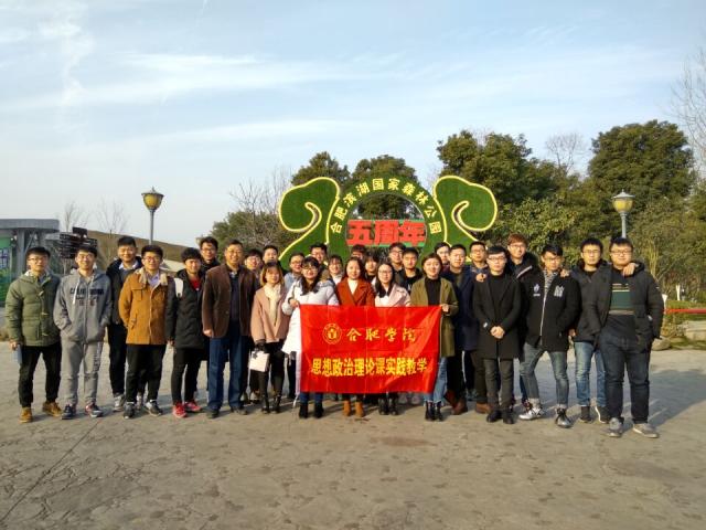 2017年12月27日上午,我校17級全體研究生在馬克思主義學院教學督導姜從山副教授的帶領下,來到了合肥市濱湖濕地森林公園進行思想政治理論課實踐教學的學習。