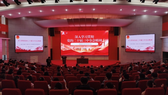 125中午我校第三十期青馬班暨菁英第四次授課于圖書館報告A廳開展。校團委副書記李妍妍擔任主講,授課主題為“學習貫徹黨的二十屆三中全會精神”。