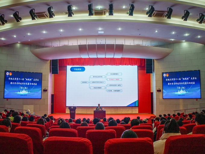 隨后開展的是“挑戰杯”大學生課外學術科技作品競賽專場講座,安徽誠恩文化科技發展有限公司總經理許飛擔任主講嘉賓。許飛細致從賽事分類、參賽作品申報、評審標準等方面進行介紹,引用“田忌賽馬”典例深入淺出說明主體賽與專項賽的重要性。在選題邏輯方面,他指出了時間早主題正”的關鍵,在經驗與案例分析中,他圍繞往年優秀作品分享自己的見解,提議參賽者依據賽事做好標題明晰和調查報告真實的工作,強化成果運用。講座最后,師生們積極踴躍提問,許飛一一細致回復和指導