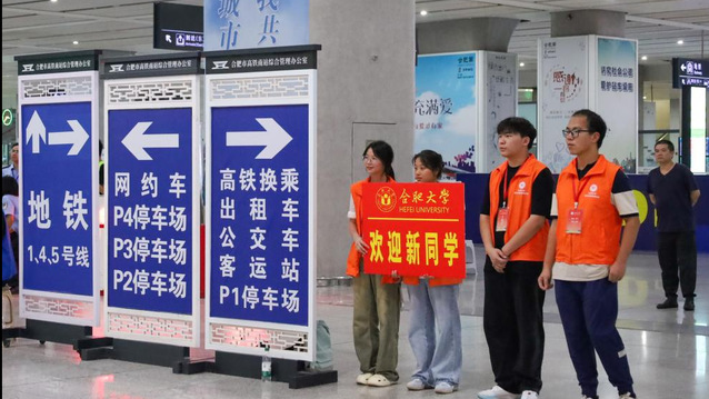 合肥南站與合肥站的出站口,我校青年志愿者聯合會的志愿者反復核對接站流程,手持“合肥大學”指引牌嚴陣以待。面對攜帶著大量行李的新生及家長,志愿者們主動上前協助搬運,清晰指引校車乘車路線,并耐心解答諸如“校車發班頻率”“宿舍區位”等各類疑問。