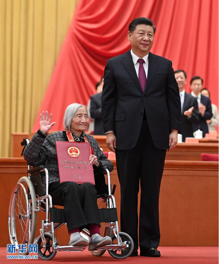 2月25日,全國(guó)脫貧攻堅(jiān)總結(jié)表彰大會(huì)在北京人民大會(huì)堂隆重舉行。這是習(xí)近平為全國(guó)脫貧攻堅(jiān)楷模榮譽(yù)稱號(hào)獲得者安徽省金寨縣花石鄉(xiāng)大灣村頒獎(jiǎng)。新華社記者 李學(xué)仁 攝