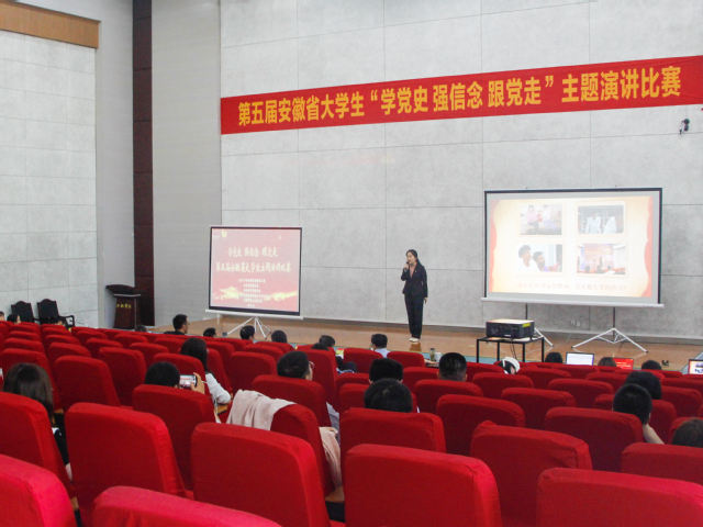為慶祝中國共產(chǎn)黨成立100周年,推進(jìn)“四史”學(xué)習(xí)教育,引導(dǎo)廣大青年凝心聚力跟黨走,推進(jìn)新階段美好安徽現(xiàn)代化建設(shè),團(tuán)省委、省委教育工委、省學(xué)聯(lián)和安徽省演講學(xué)會聯(lián)合舉辦第五屆安徽省大學(xué)生主題演講比賽。5月9日,以“學(xué)黨史,強信念,跟黨走”為主題的安徽省大學(xué)生主題演講比賽復(fù)賽在我校舉辦,團(tuán)省委學(xué)校部部長盧蓉、安徽省演講學(xué)會會長崔躍松參加。