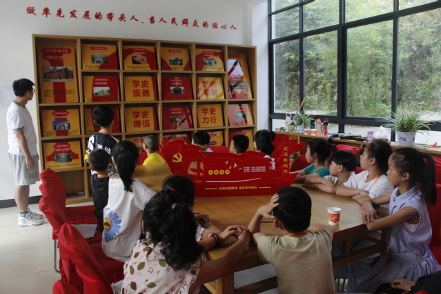 上午教案組的教學活動也在同步正常開展,今日課表為:黨史教育課、愛國情懷課、能力突破課以及集體展示課。黨史教育課上,三四年級班的同學學習了民族英雄——鄧稼先,五六年級班的志愿者帶同學們學習了黨史主題教育——重慶篇。愛國情懷課上,五六年級班同學參觀新時代文明實踐站二樓凌安村村史館。能力突破課上,一二年級同學發揮想象,啟迪思維。