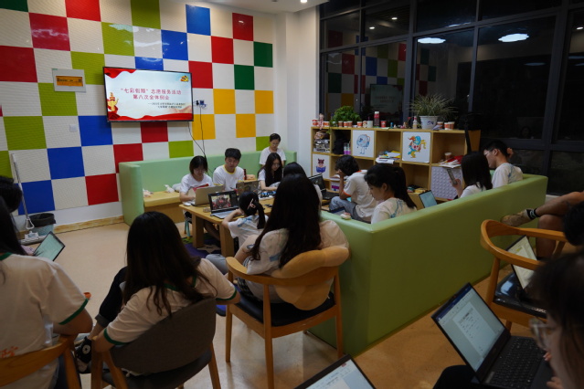 晚上九點,全體隊員于青少年活動室“七彩假期”志愿服務活動第八次全體例會,首先,隊長汪欣楠就教案組存在的問題給出了解決方案。然后,宣傳組向大家展示了今天創作出的趣味短視頻以及航拍凌安村全景,作品獲得全體志愿者的贊許。最后,指導老師丁婧表示,希望大家能夠把握好剩下的時間,完美完成本次志愿服務活動。