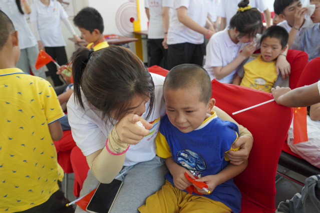上午,志愿者為全體學生策劃了一場告別典禮,全體同學、全體志愿者以及部分家長齊聚新時代文明大講堂。志愿者為同學們準備了歌曲以及舞蹈表演,志愿者為大家表演了舞蹈《少年》、歌曲《再見》和歌曲《倔強》。一句句歌詞中,流露出志愿者們對“七彩假期”、對凌安村以及孩子們的不舍,回想著在凌安村與孩子們朝夕相處的這十天,志愿者熱淚盈眶。孩子們坐在臺下,看著志愿者的表演,紛紛流淚,還有很多孩子拉住志愿者的手,不舍得松開。之后,播放了宣傳組在活動期間精心制作的的視頻作品。其中,“凌安村的故事”主題采訪深深地感動了在場的志愿者、孩子們以及家長,孩子們說出了自己的夢想,和想對老師說的話,在場全體志愿者潸然淚下。之后,隊長汪欣楠為分發了紀念明信片以及全體合影。接下來,志愿者帶領同學們回到各班級,給同學們分發精心準備的小禮物及獎狀,并合影留念。這是本次“七彩假期”最后一次放學,同學們依依不舍,一步一回頭的離開了實踐站。
