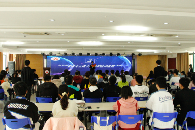 肥學院第十三屆大學生科技節開幕式10月22日在大學生活動中心活動室舉辦。團委副書記李妍妍團委學生會管理辦公室主任丁婧和校團委學生兼職副書記王宇及各二級學院代表出席本次活動。校學生會胡守城主持此次開幕式。