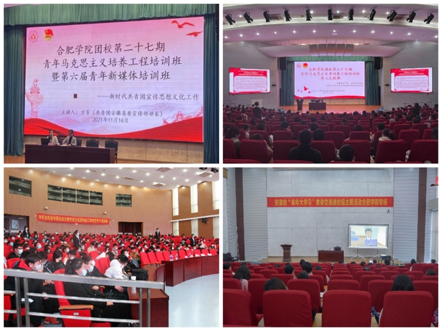 2021年11月16日,校團委邀請了共青團安徽省宣傳部部長方芳擔任主講人,她以《新時代共青團宣傳思想文化工作》為題,圍繞青少年黨史學習教育、黨對新時代團員青年的要求、共青團宣傳思想文化工作、網(wǎng)絡意識形態(tài)現(xiàn)狀四方面展開講述。她以清晰的歷史背景和具體的實例分析,為學員們進行了深入淺出的工作指導。