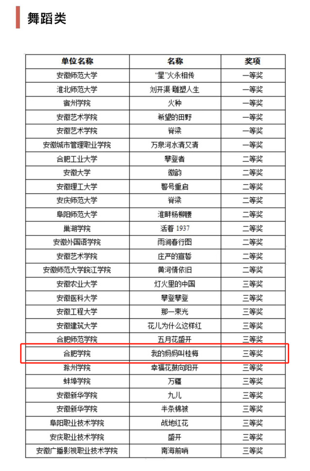 2022年10月14日,安徽省大學(xué)生“喜迎二十大”文藝匯演比賽決賽圓滿落幕,經(jīng)過激烈角逐,我校經(jīng)濟(jì)與管理學(xué)院選送的舞蹈《我的媽媽叫桂梅》榮獲三等獎(jiǎng)。