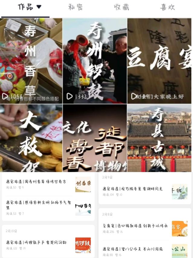 團隊走訪了古城遺跡,學習了壽縣的歷史古韻記錄了壽州香草制作、八公山豆腐制作等傳統工藝創建微信公眾號、抖音賬號(壽州遺韻)通過新媒體平臺向全國人民推薦家鄉景點、美食講述家鄉故事,弘揚壽縣非遺傳統文化。何燾同學談到參與此次活動的原因,說到:“家鄉哺育我成長,如今我也希望盡我的綿薄之力推廣家鄉文化,讓更多人了解家鄉的風土人情,助力家鄉振興