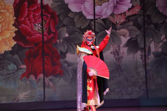 演出共分四場。首場京劇《賣水》源出山西蒲州梆子《火焰駒》“賣水”一折,演員通過靈動眼神、甜脆嗓音恰到好處的舞姿完美的展現(xiàn)出天真活潑的小丫鬟形象;徽劇《借扇》、京劇《穆柯寨》,演員們威風(fēng)凜凜,以節(jié)奏強烈明快、動作行云流水的打戲營造出身臨其境的真實感,現(xiàn)場生動活潑;《變臉》節(jié)目中,演員著鏗鏘有力的音樂不斷更換人物面具,并下場與觀眾熱情互動,現(xiàn)場掌聲不斷。