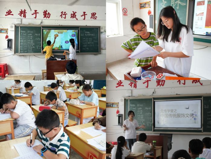 語言文化與傳媒學(xué)院暑期“三下鄉(xiāng)”實(shí)踐團(tuán)隊(duì)志愿者們組建“愛灑鄉(xiāng)村 教育同行”教學(xué)團(tuán)隊(duì)。教學(xué)團(tuán)隊(duì)分為書畫組、英語組、國學(xué)組和歌舞組。教學(xué)內(nèi)容以傳統(tǒng)文化為主,教學(xué)時(shí)間從76號持續(xù)到713號。