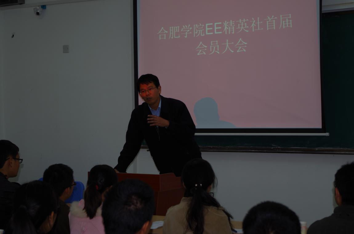10月25日晚7點,EE精英社首屆全體會員大會在生化樓研究生專用教室成功召開,指導老師張金流博士、會長邴常遠及全體會員等參加會議。此次大會由會長邴常遠主持,大會主要包含三項內容:1.精英社指導老師發言;2.會長介紹社團的基本情況、社團活動的組織模式、各部門的職能及近期的活動計劃;3.新會員(研一新生及本科生)作自我介紹并選擇加入的部門。