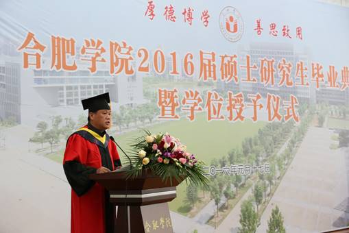 畢業典禮在莊嚴的國歌聲中開始。合肥學院碩士研究生學位評定委員會委員、校黨委副書記丁明教授首先宣讀了合肥學院碩士研究生學位評定委員會“關于授予2016屆環境工程專業徐芳麗等29名研究生工程碩士學位的決定”和 “關于表彰合肥學院2016屆環境工程專業碩士研究生科研成果獎、優秀畢業生、優秀畢業論文和‘合大環保獎學金’獲得者的決定”。