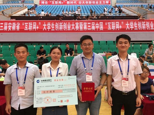 2017年暑假,在顧涓涓和胡國華兩位老師的指導下,我校2016級3名碩士研究生(吳亞、張紅夢、李思聰)組成團隊參加了第三屆中國“互聯網+”創新創業大賽。8月4日,該團隊奔赴安徽財經大學參加安徽省總決賽,過激烈的角逐以優異的成績獲得安徽省金獎,隨后該團隊斗志昂揚、積極進取,經過堅持不懈的努力最終取得了國家銅獎的好成績