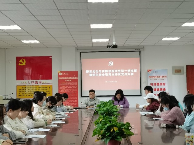 2023314日星期二下午四點,語言文化與傳媒學院學生第一黨支部在五棟二樓大會議室召開組織生活會暨民主評議會。會議由學生第一黨支部書記劉政主持召開,學院黨委副書記張愛萍列席點評。