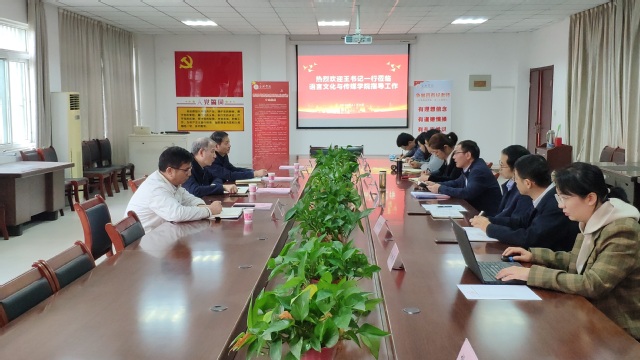 會上,語言文化與傳媒學院黨委書記儲昭輝對王書記一行到來表示熱烈歡迎,就學院2023年黨建重點任務完成情況用“四個高”進行了匯報:一是高質量完成巡察整改;二是高標準開展主題教育;三是高位推進全面從嚴治黨;四是高度重視學生就業工作。同時匯報了當前學院黨建工作存在的不足及下一步工作打算。