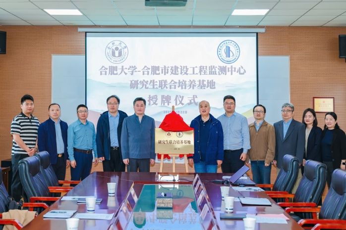 4月22日,黨委委員、副校長王曉峰率隊(duì)赴合肥市建設(shè)工程監(jiān)測中心有限責(zé)任公司參加交流座談會(huì)暨研究生聯(lián)合培養(yǎng)基地授牌儀式,研究生處、城市建設(shè)與交通學(xué)院主要負(fù)責(zé)人陪同。合肥市建設(shè)投資控股(集團(tuán))有限公司黨委書記、董事長雍鳳山,合肥市建設(shè)投資控股(集團(tuán))有限公司總工程師、合肥市建設(shè)工程監(jiān)測中心有限責(zé)任公司董事長傅劍及相關(guān)負(fù)責(zé)人參加。