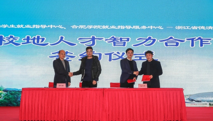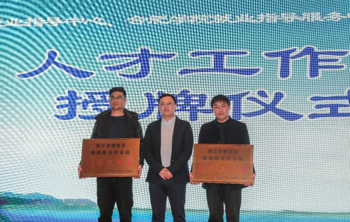 隨后,我校和合肥工業(yè)大學共同與德清縣人社局簽訂人才智力合作協(xié)議,德清縣委組織部副部長、人才辦常務副主任費征代表德清縣向我校和合肥工業(yè)大學授予“浙江省德清縣駐戰(zhàn)略合作高校人才工作站”牌匾。