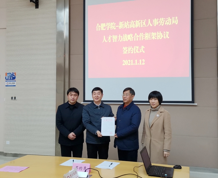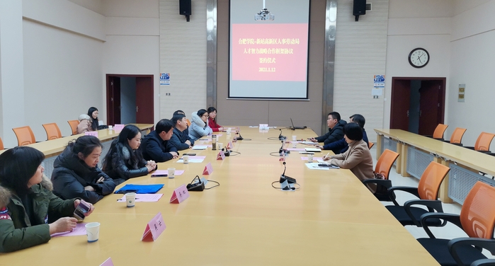 在新站高新區管委會會議室,我校與新站高新區人事勞動局舉行了人才智力戰略合作座談和簽約儀式。新站高新區人事勞動局副局長王斌,人力資源服務中心主任李慧潔、副主任彭俊參會。會議由王斌主持。