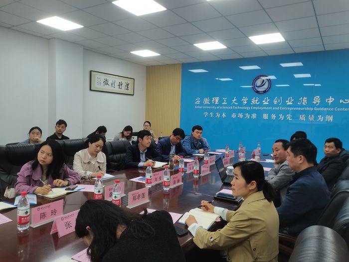 安徽理工大學在該校大學生活動中心一樓會議室熱情接待了我校一行。該校就業創業指導中心主任田中良對我校一行的到來表示熱烈歡迎。朱濤介紹了本次調研主要是為學習安徽理工大學在就業工作方面的好經驗、好做法,為學校畢業生就業工作提供有益借鑒。