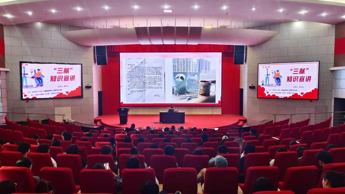 4月18日下午,合肥市紅十字會(huì)和安徽省血液中心、合肥市中心血站主辦的首場(chǎng)“三獻(xiàn)”知識(shí)專題講座在我校舉辦。馬克思主義學(xué)院退休教師姜從山作為主講人,向?qū)W生講述和分享“三獻(xiàn)”相關(guān)知識(shí)。合肥市紅十字會(huì)事業(yè)發(fā)展部副部長(zhǎng)王雙全,合肥市中心血站無(wú)償獻(xiàn)血招募區(qū)域主管鄭東、張磊、褚媛,校關(guān)工委秘書(shū)長(zhǎng)劉玉培,團(tuán)委副書(shū)記李妍妍和300余名學(xué)生到場(chǎng)聆聽(tīng)。