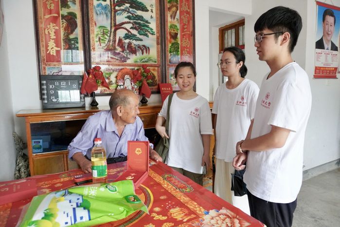 7月10日上午,外國語學院“語”你同行鄉村振興團前往高店鎮及其周邊鄉村走訪慰問老黨員吳根發、劉萬好、徐應宏。拜訪過程中,老黨員們訴說紅色故事,表達對黨的崇高敬意、對政府的深切感激。在這條紅色尋訪之路上,團隊成員們感悟紅色精神、汲取紅色力量、傳承紅色基因。未來,老黨員們的紅色基因將繼續激勵他們攜手為實現中華民族偉大復興逐夢前行,用青春和奮斗續寫更加輝煌的篇章。